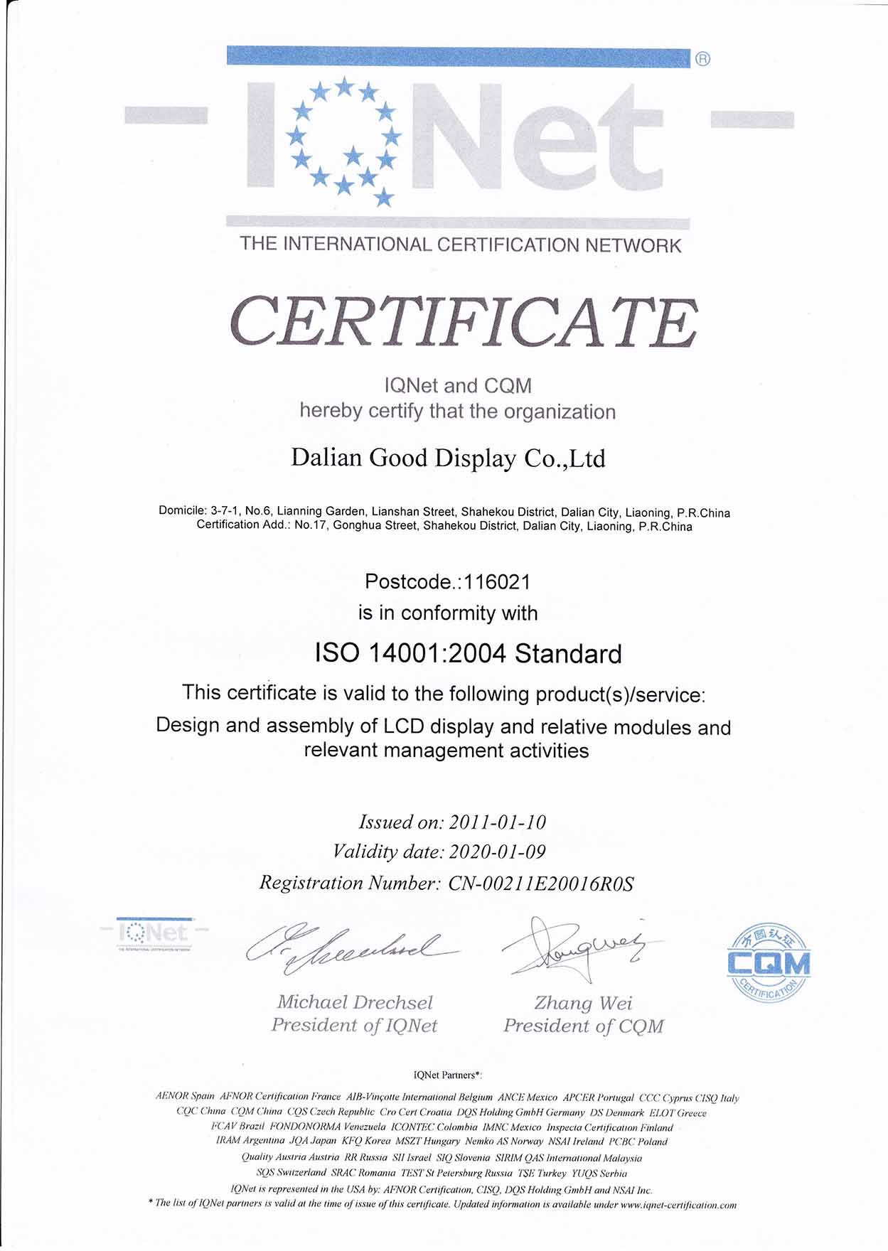 IQNet The International Certification Network is an Association composed of more than 35 certification/registration bodies, with legal seat in Bern/Switzerland, you can visit IQNet's site for more information.